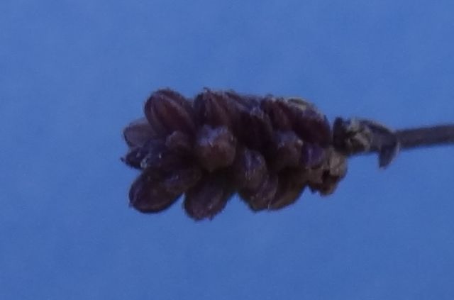花穂が伸びてゆく。下部は熟した果実となり、包む萼片が褐色になる。