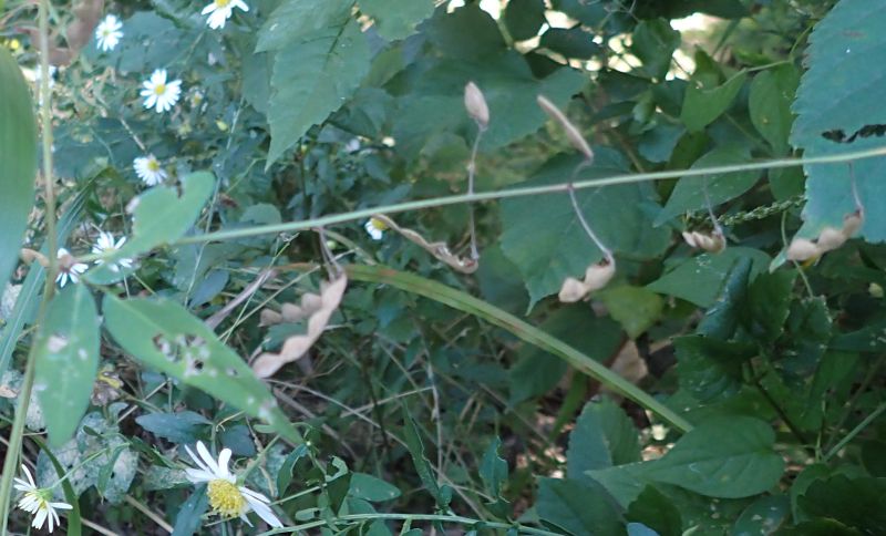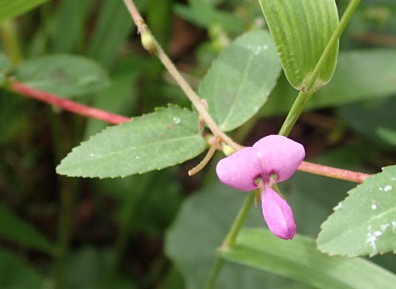 花は蝶形花で、斑紋のある大きな旗弁が目立つ。