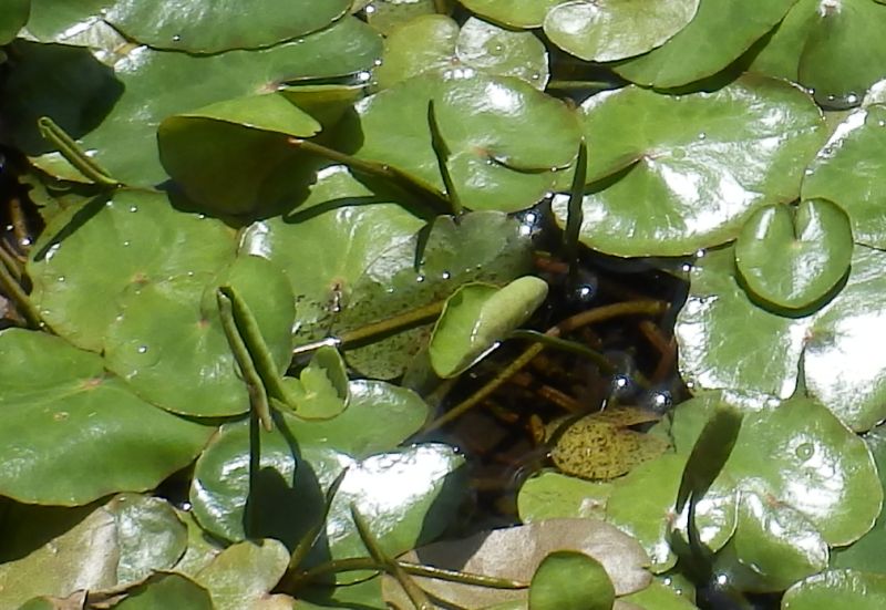 葉の芽は左右から内側に巻かれて出てきて、水面で広がる。(2016/5/5)
