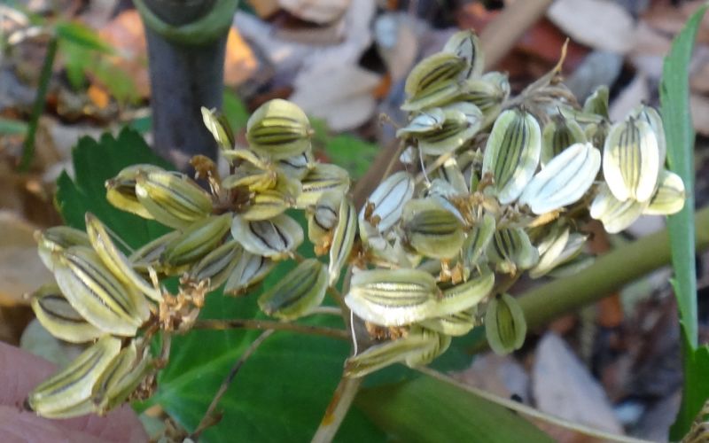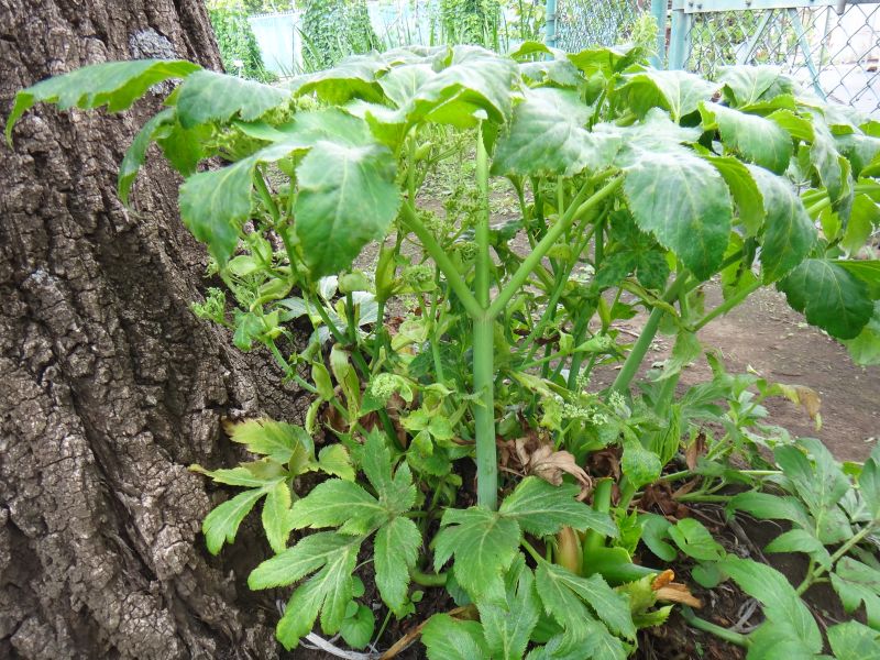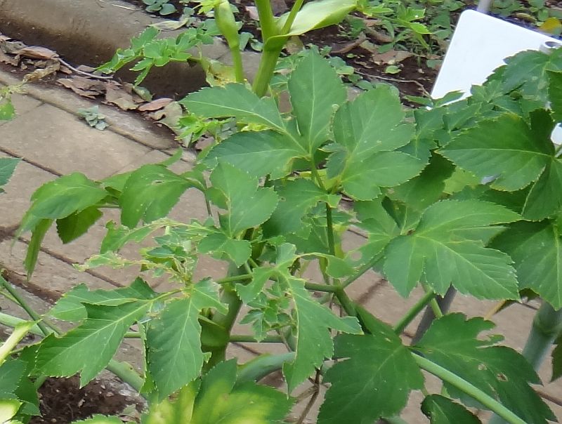 茎や葉柄を切ると黄色い汁が出る。