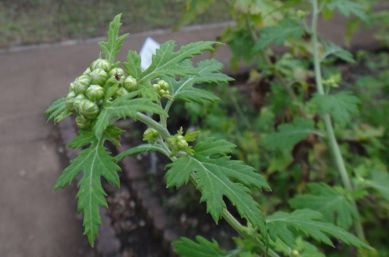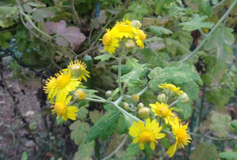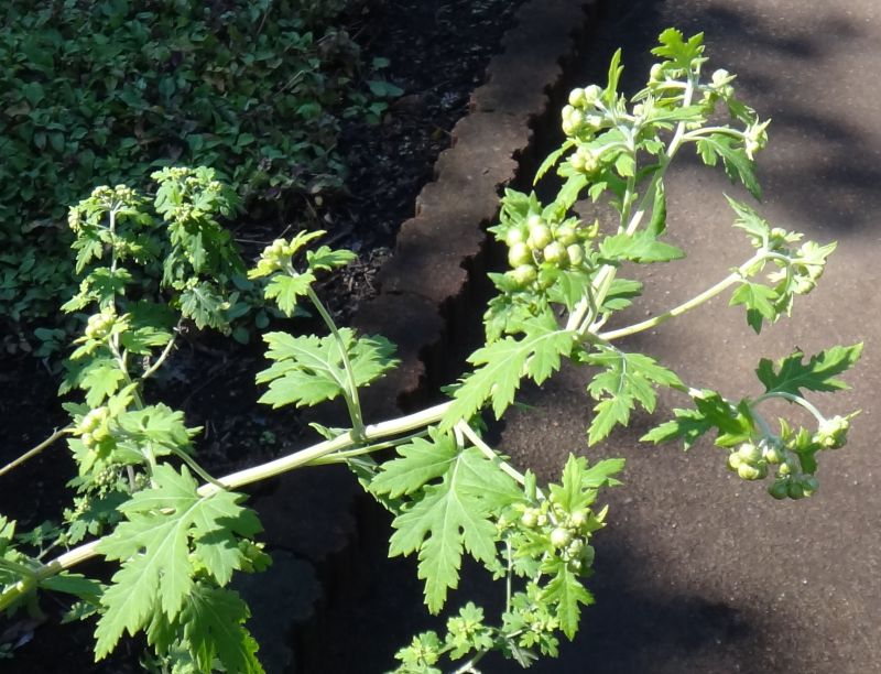 茎の上部は白い短毛が密生するので、淡緑色となる。蕾は丸い。(2016/11/6)