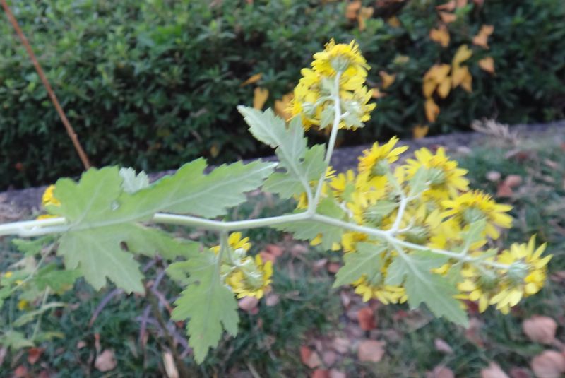 枝先に筒状花も舌状花も黄色い直径約1.5センチの頭花がまばらな円錐状に咲く。