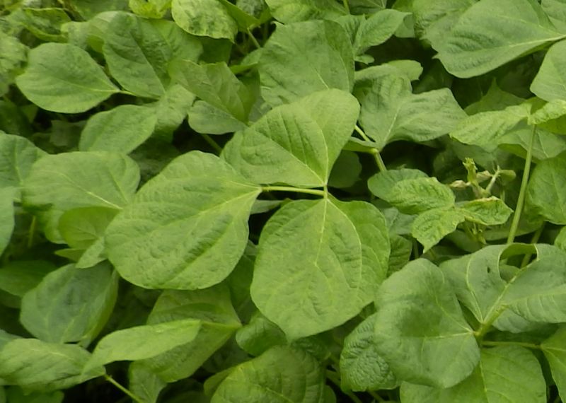 柄の長い3出複葉が互生し、小葉は卵円形で、
