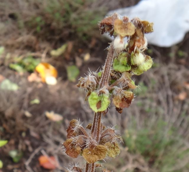 果実は4分果で、小さな楕円形の黒い種子ができる。