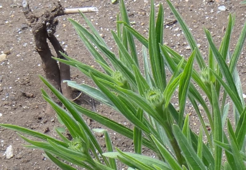 エキナセア・パリダの蕾。葉には細毛が密生する。(2015/5/6)
