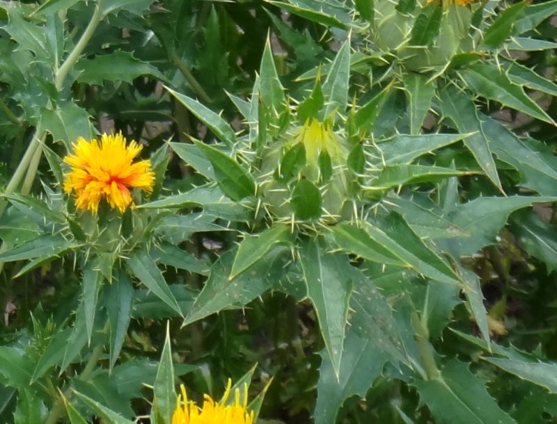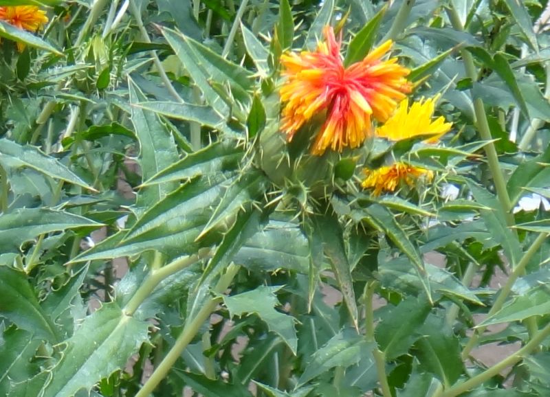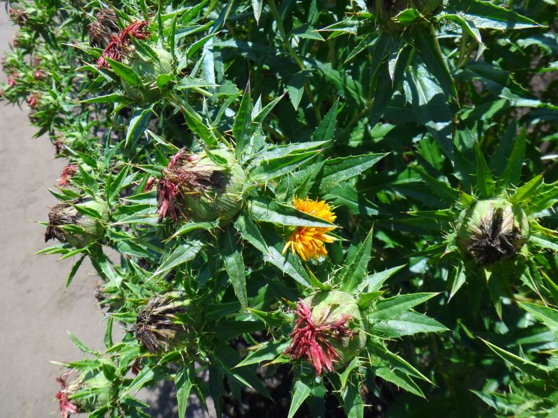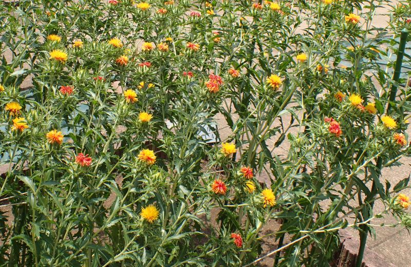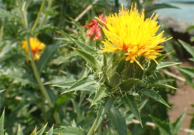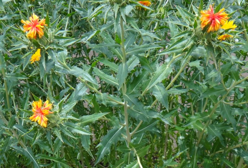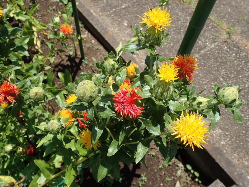 ベニバナ属、筒状花のみをもつ。越年草(1年草とすることも可能)。