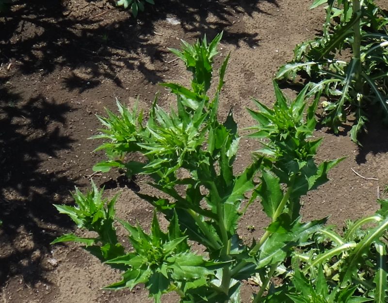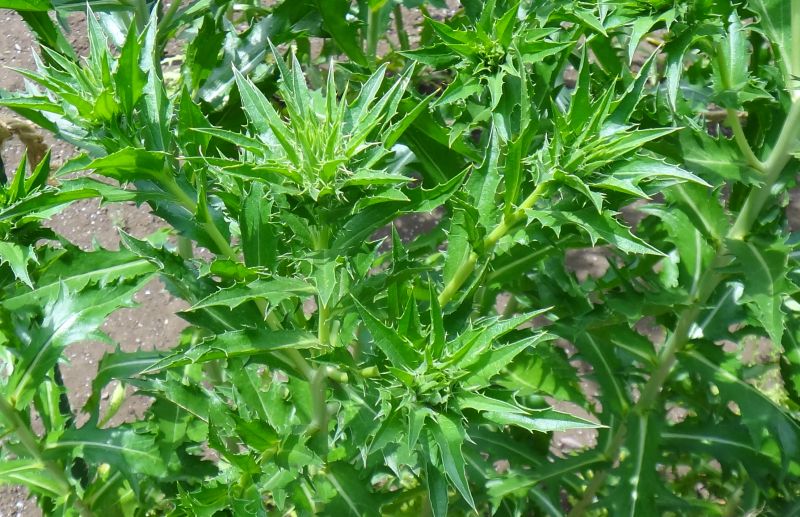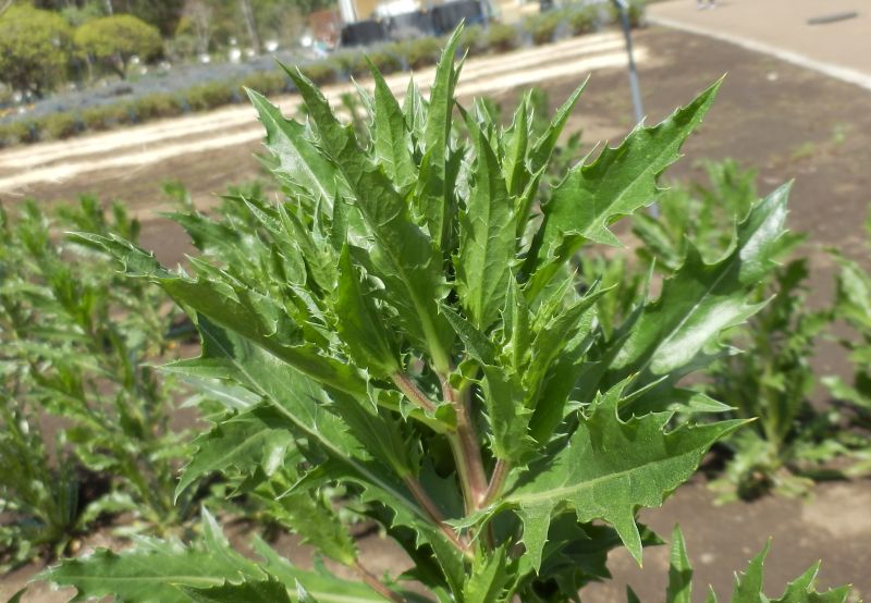 葉は広披針形で、棘状の鋸歯があり、互生する。(2016/4/15)