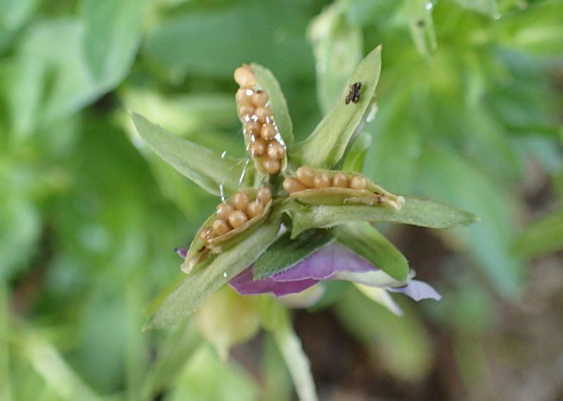 刮ハが3裂すると、黄褐色の丸い種子が現れる。(2017/5/18)