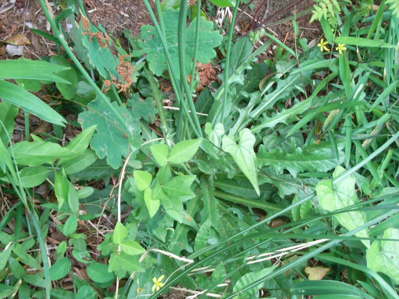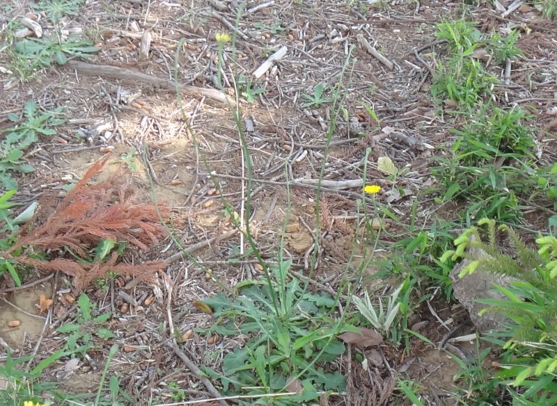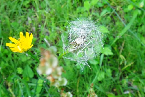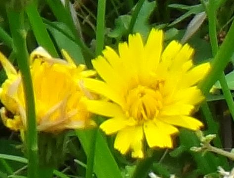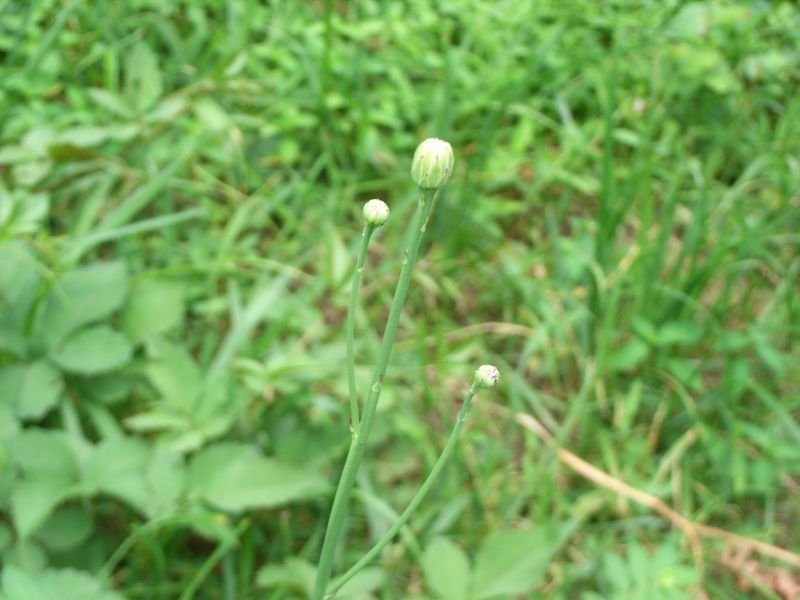 舌状花のみからなる直径3〜4センチの黄色い頭花を1個つける。