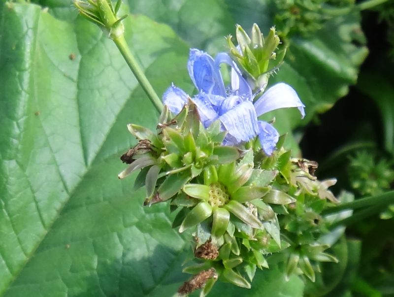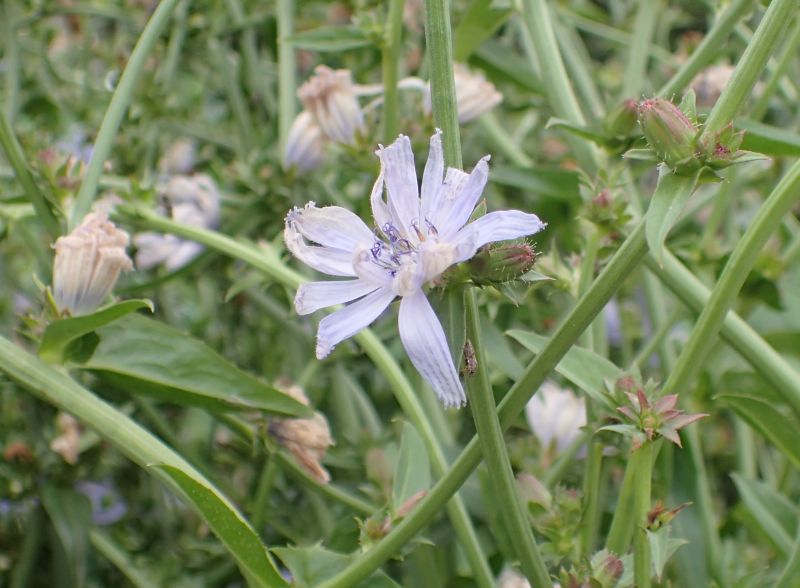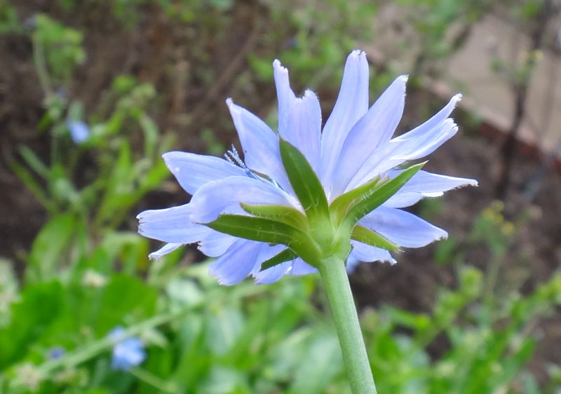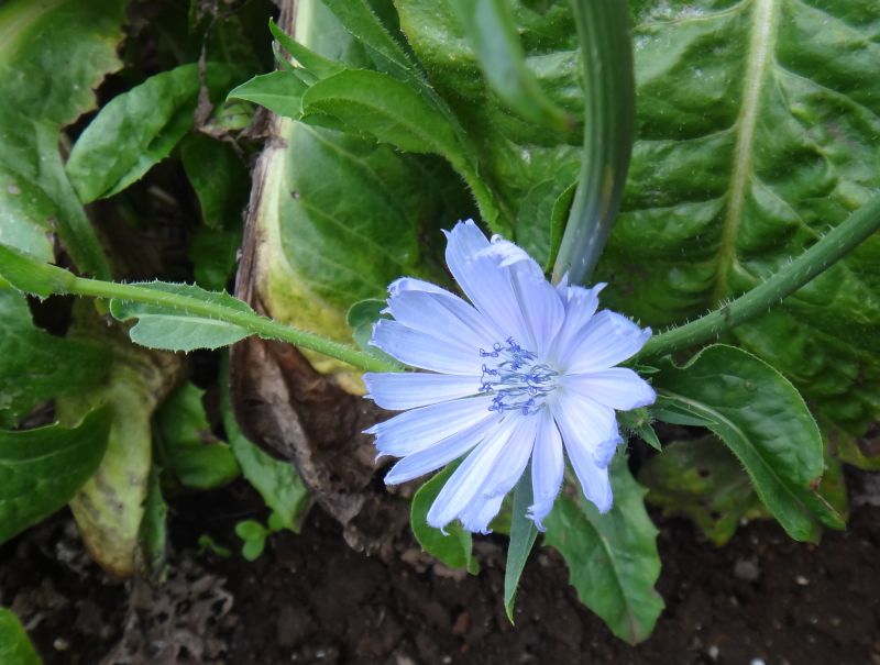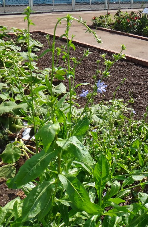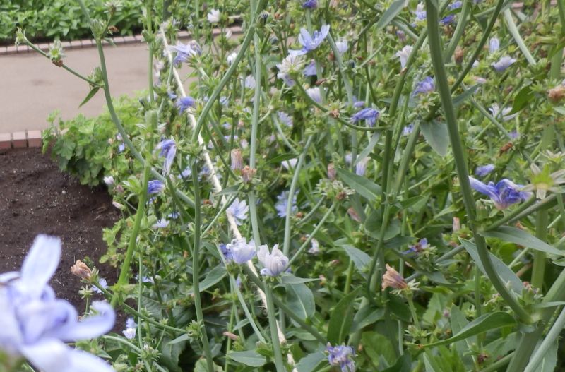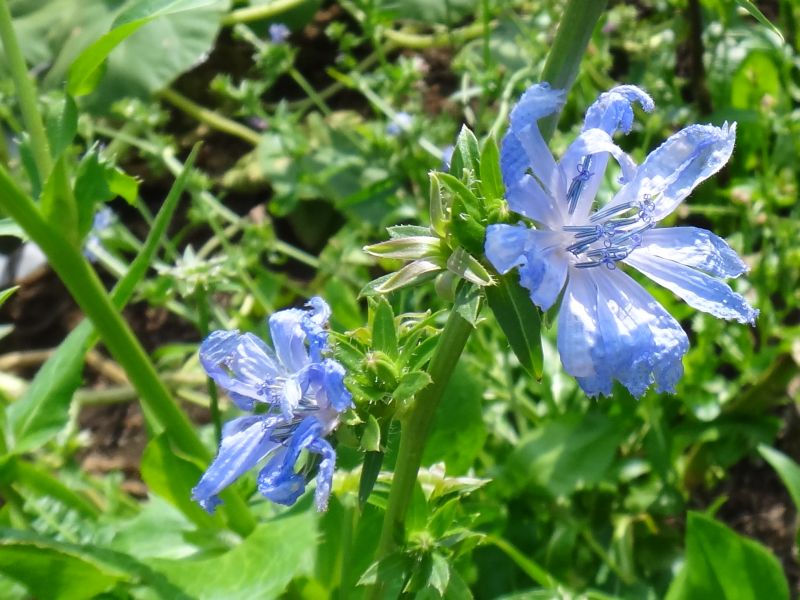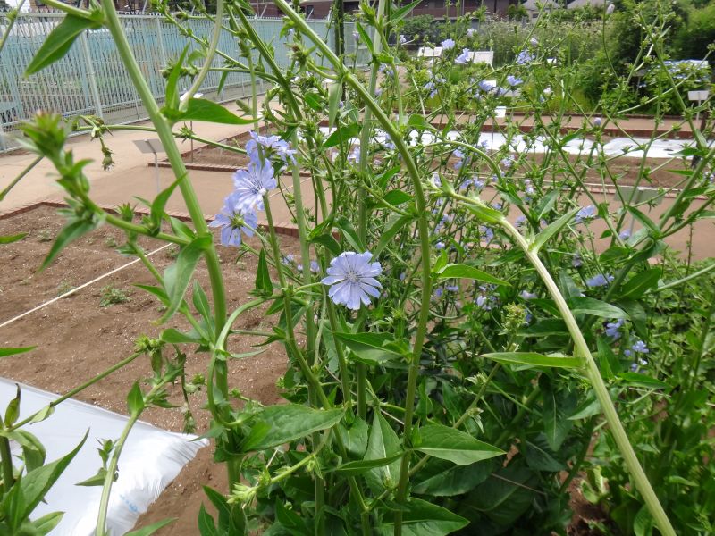舌状花のみからなる淡青色の頭花が朝開いて午後閉じる。