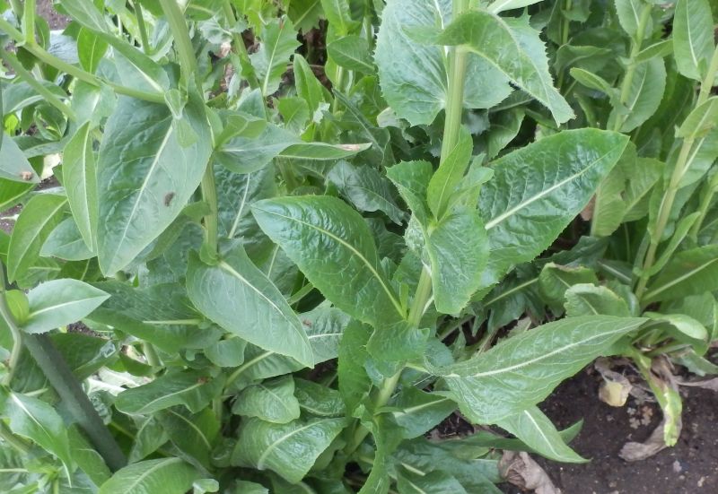 茎葉は先の少し尖った楕円形で、鋸歯がある。(2015/7/2)
