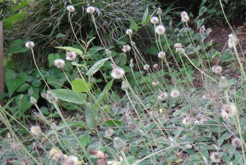 花後に総苞の下部が膨らみ、果実が熟すと冠毛が球状に集まって出る。(2016/5/14)