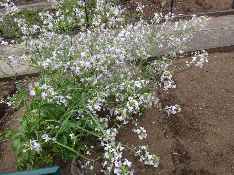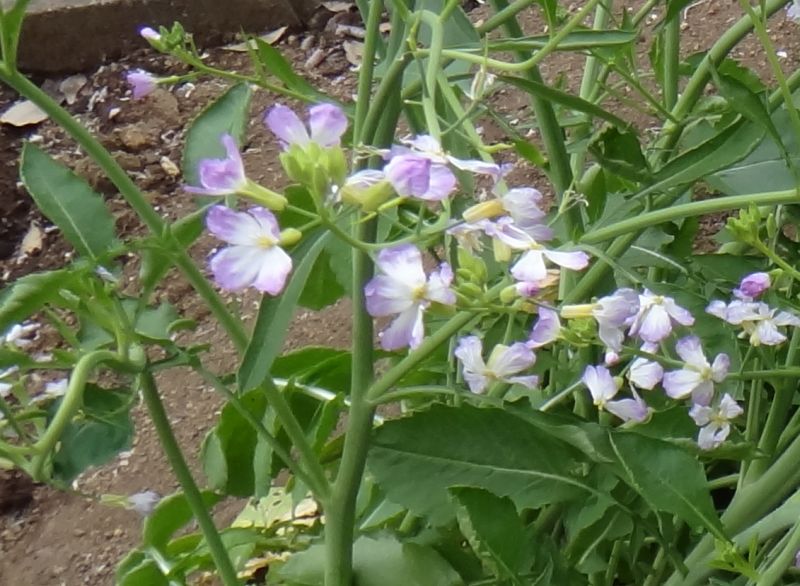 茎が高くのびる(薹がたつ)と、枝先の総状花序に、