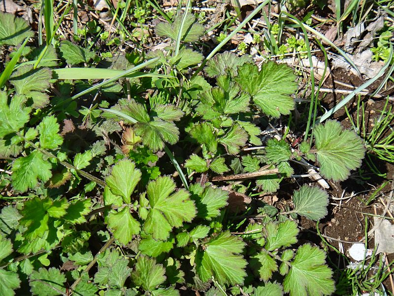 根生葉は奇数羽状複葉で、小葉は扇状楕円形で3裂し、鋸歯があり、頂小葉が大きい。