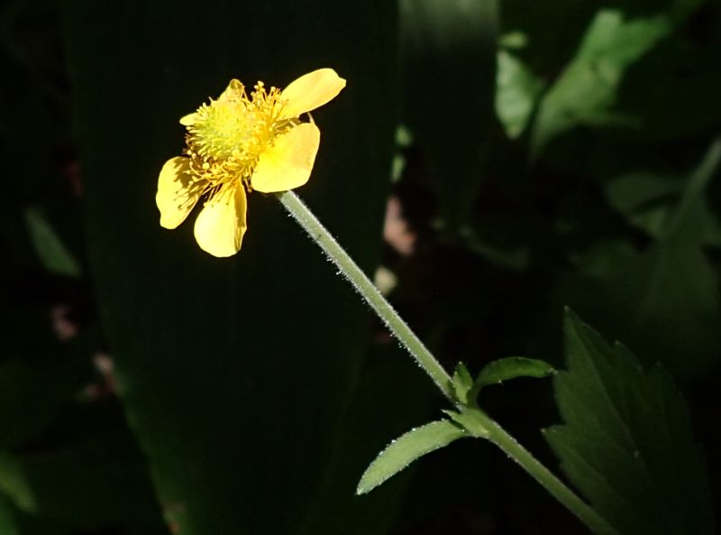 枝先に長さ1.5〜2センチの黄色い5弁花を単生させる。