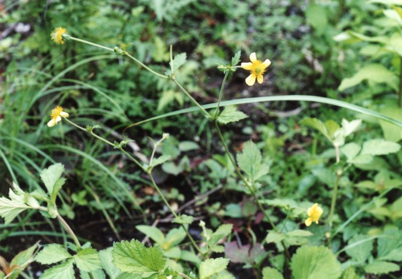黄色い5弁花が茎先に咲く。Photo by H. O. (2003/6/27)