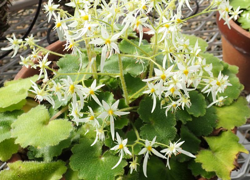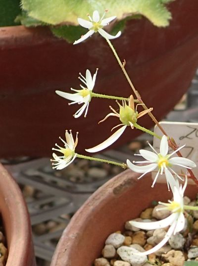 花茎はまばらな円錐状となり、白い花を咲かせる。