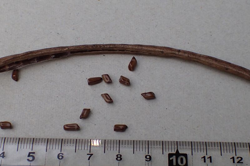 褐色で先のとがった種子は、決明子という利尿用の生薬や、