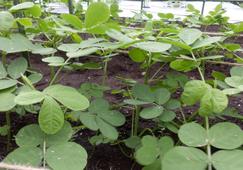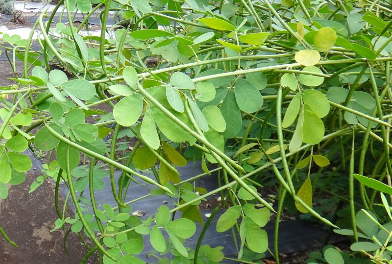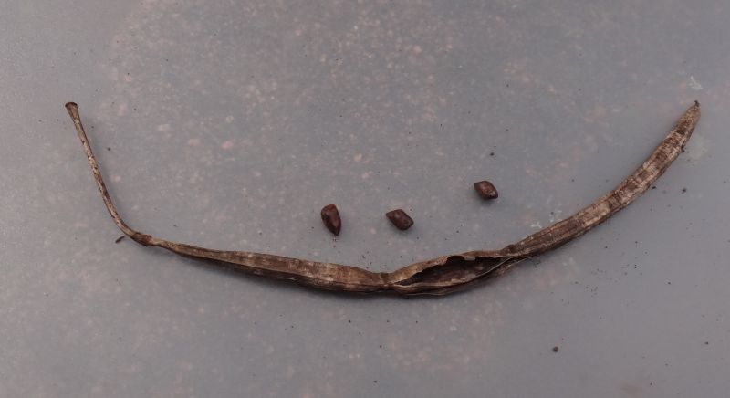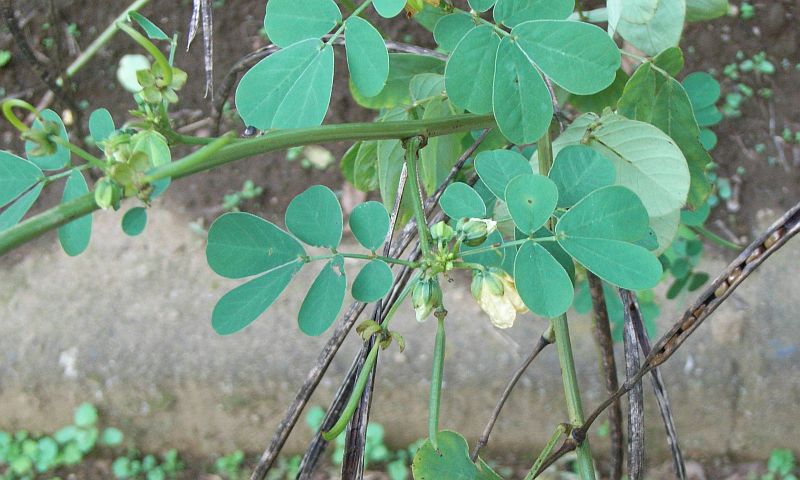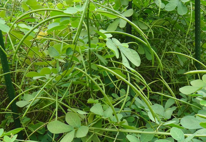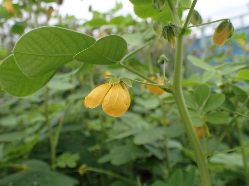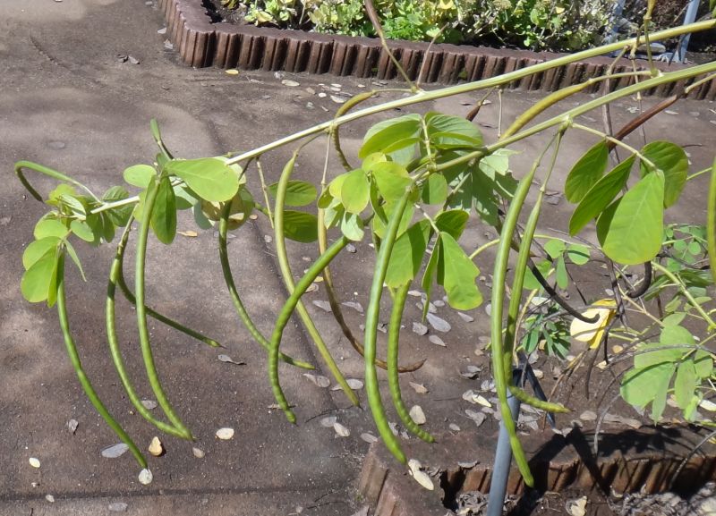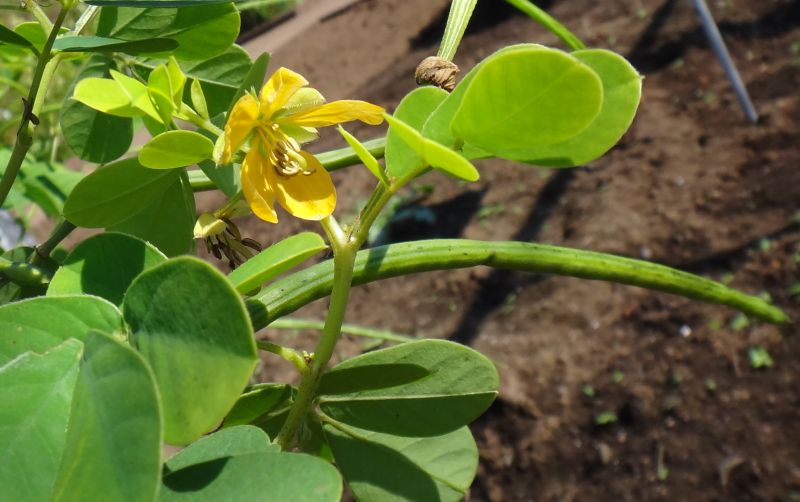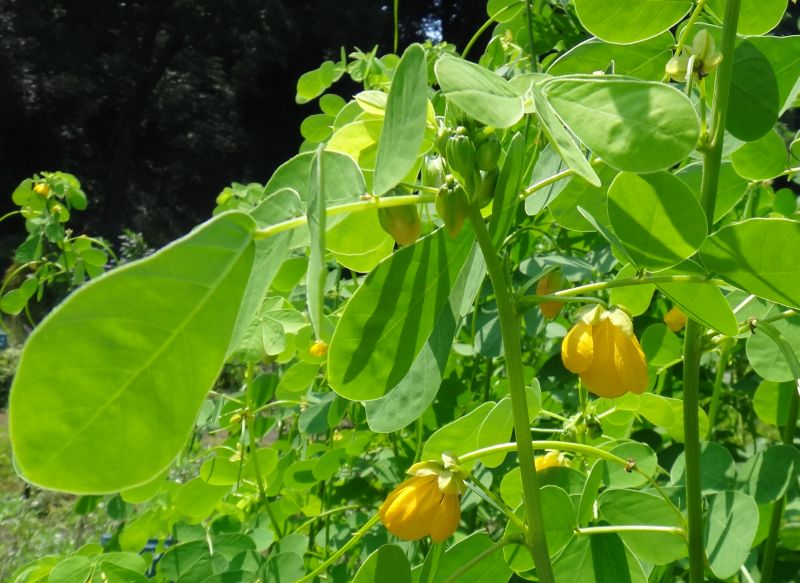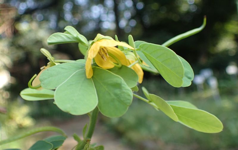 黄色い花が咲き、長さ15センチぐらいの豆果がつく。