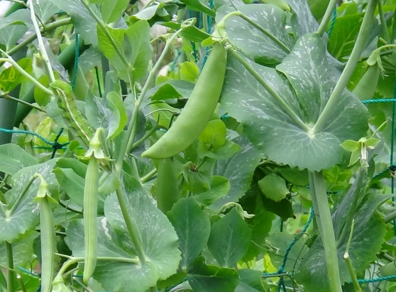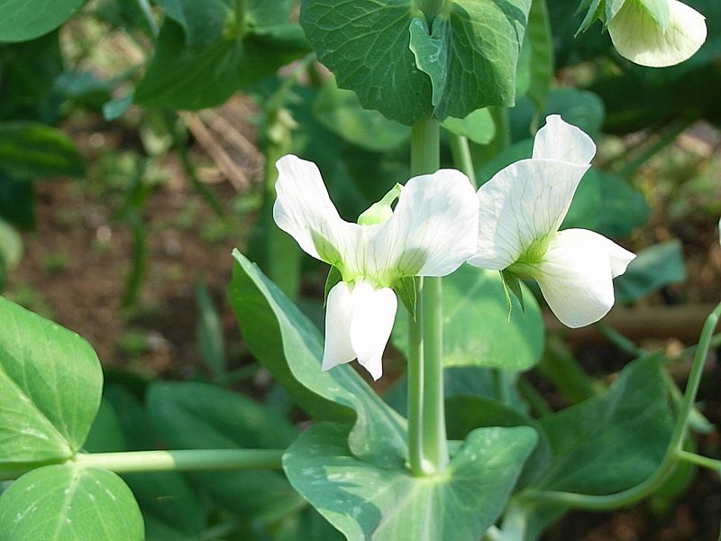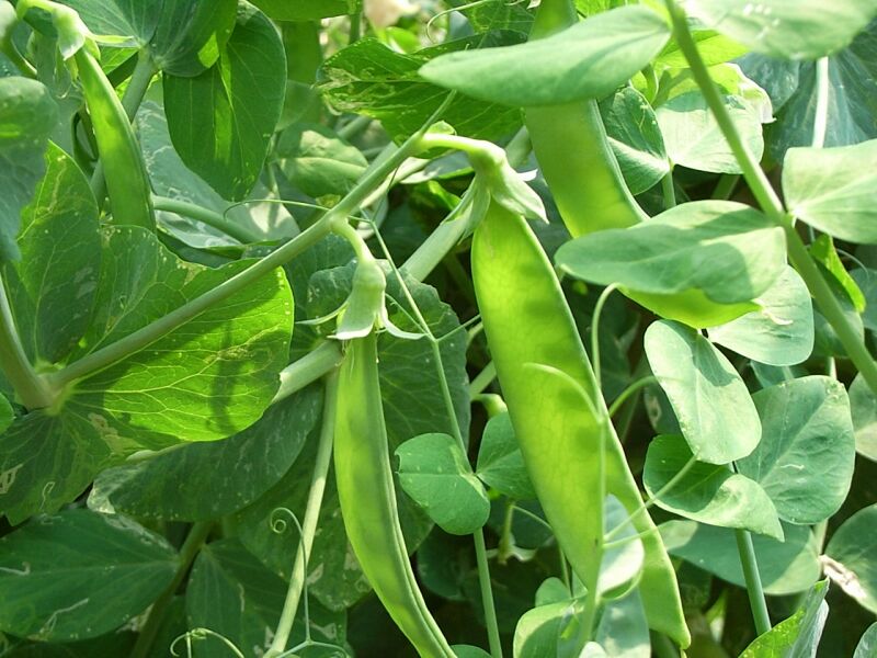 扁平な若い豆果はサヤエンドウとして食用にされる。