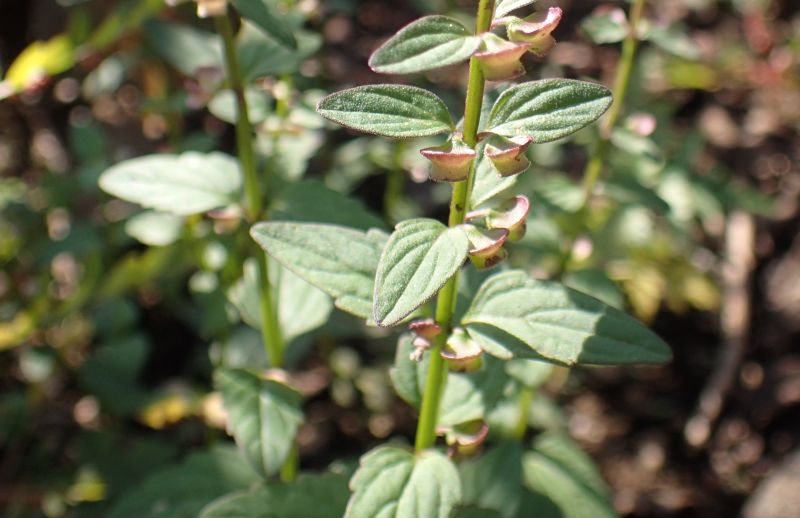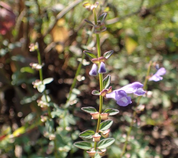 コバノタツナミ :高さ5〜20センチ、葉は1センチの広卵形で毛が多い、鋸歯5〜6対、花は茎先。