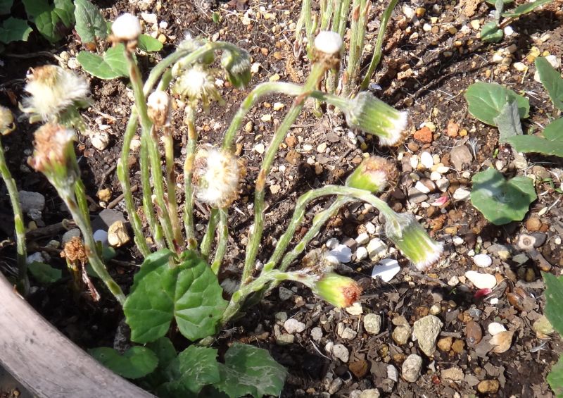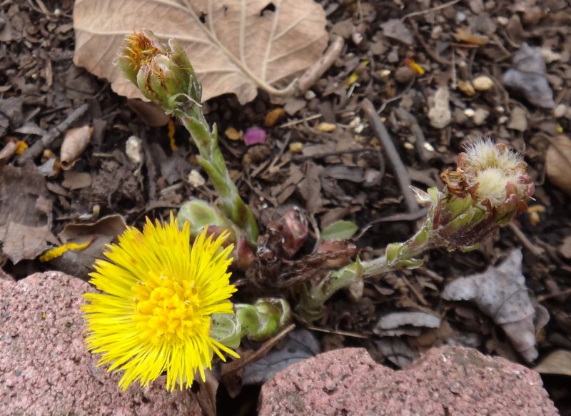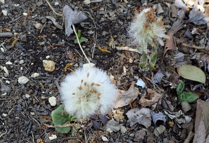 冠毛がのぞく。花茎はまだ小さい葉で覆われている。(2016/3/16)