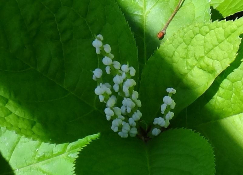 小さい白い花をつける。