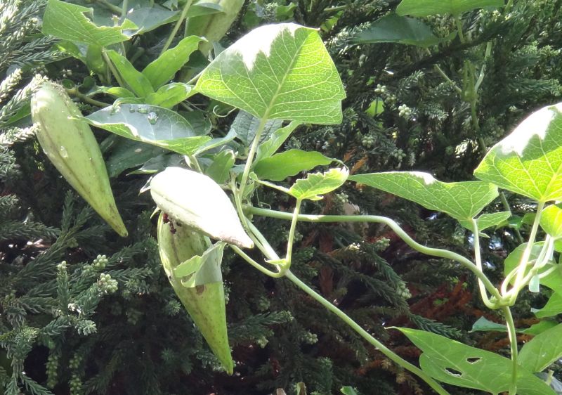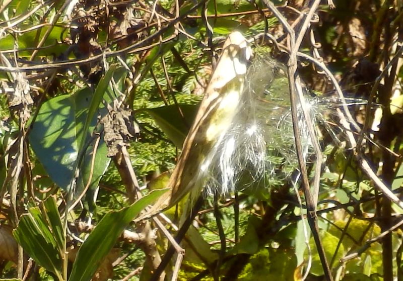 袋果が割れると長い毛のある種子が風で飛ぶ。