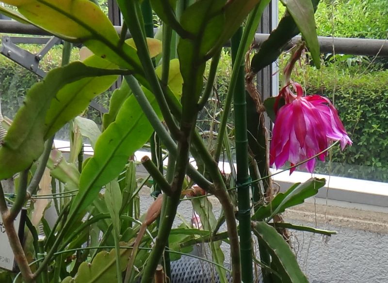 支柱がないと傾く。(原産地では樹木にもたれかかって、葉状茎は垂れ下がる。)