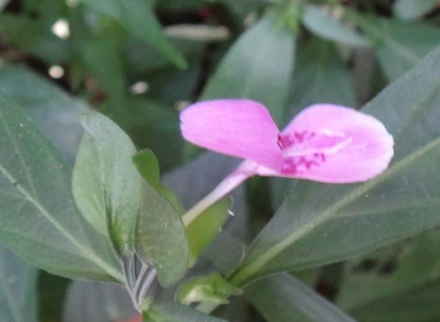 花冠は淡紅色で、基部に濃紫色の紋があり、