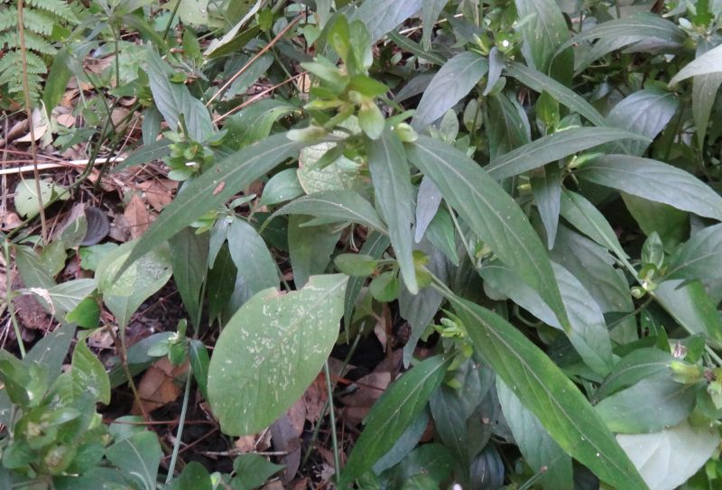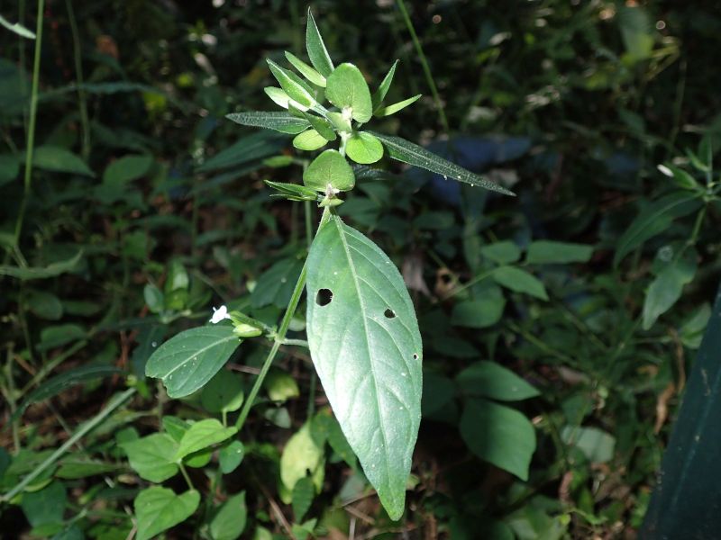 葉は長さ5〜8センチの披針形で、濃緑色の全縁で、対生する。