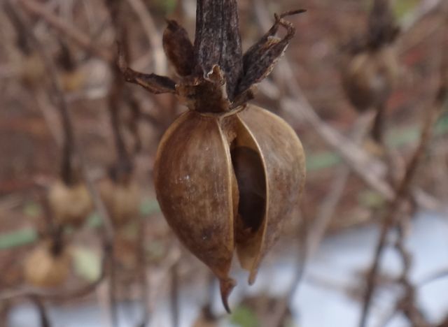 種子は球を1/4に縦割りした形で黒褐色。(2017/10/31)