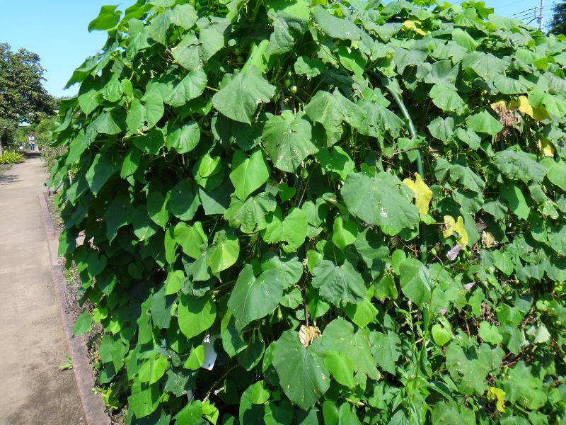アサガオのような花が夕方開いて朝にはしぼんでいる。