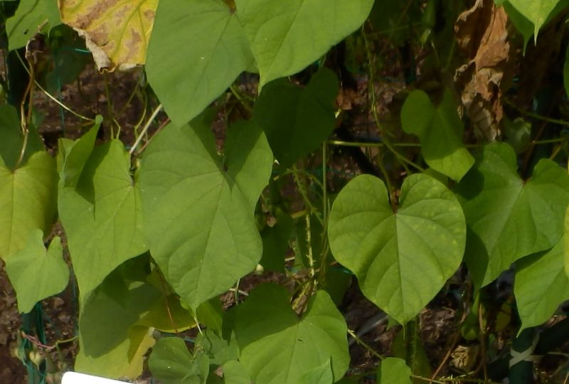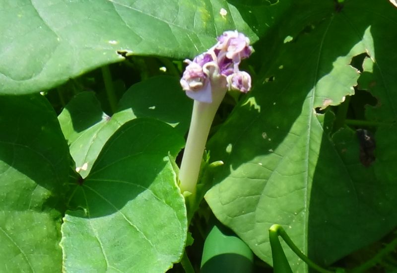 葉は長さ5〜7センチの心形で、葉柄が長く、互生する。