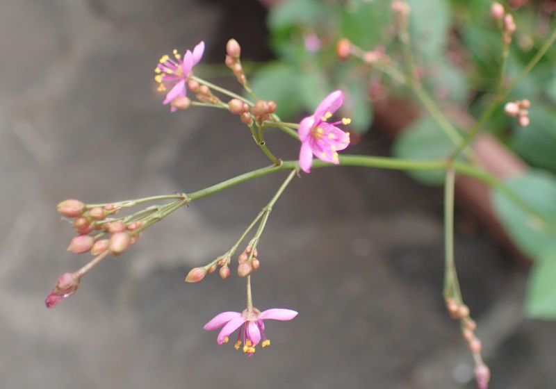 夏の3時すぎにピンクで直径5ミリあまりの5弁花をまばらに咲かせる。
