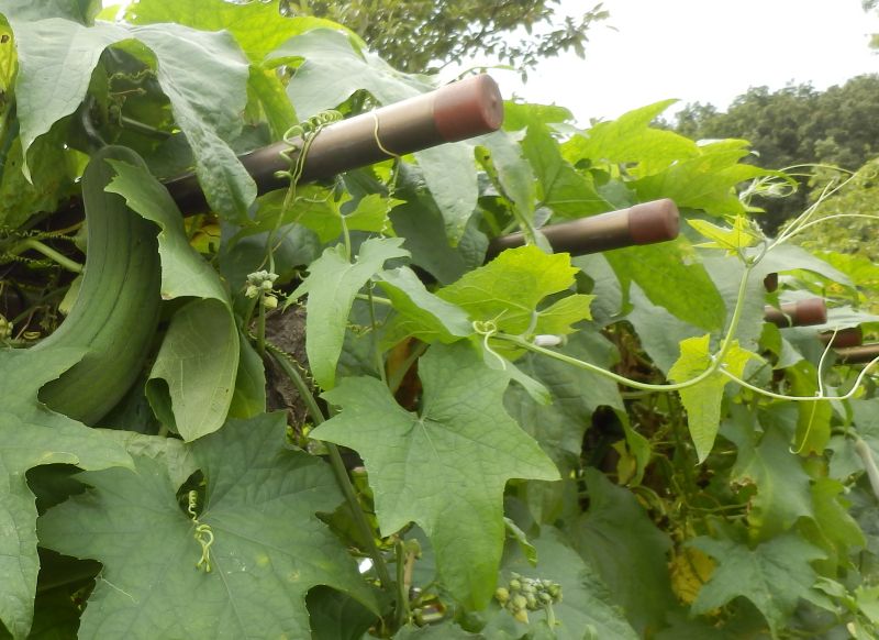葉柄の基部から出るヒゲヅルで木や支柱にからむ。