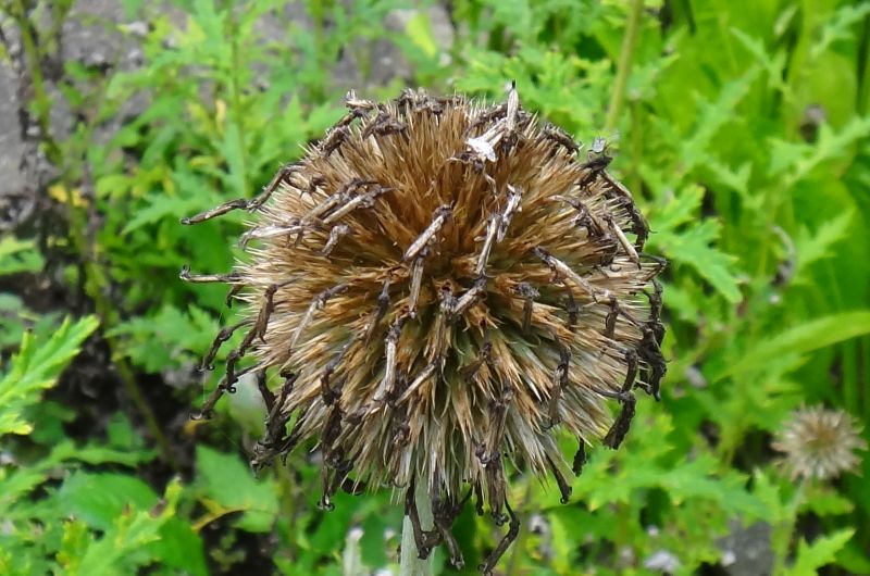 くす玉のような球形の集合花を1個つける。