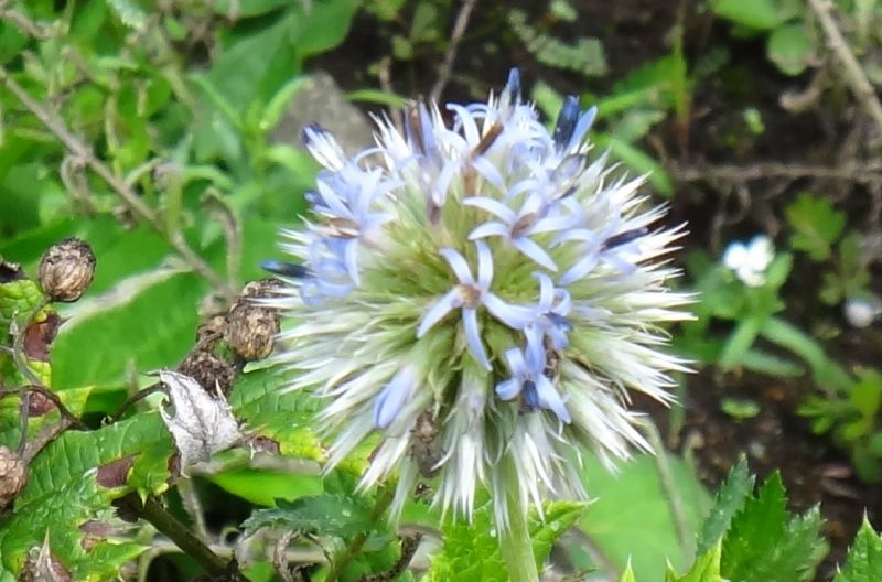 高い花茎の先に、瑠璃色で直径5センチぐらいの