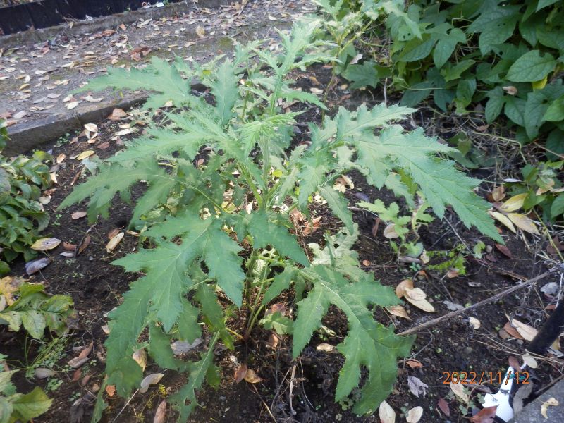葉の裂片の先は短い棘となる。鋸歯の先も棘状となる。(2022/11/12)