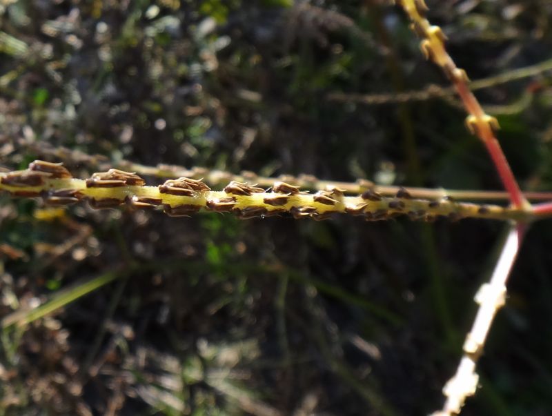 ヒナタイノコズチ:針状の小苞の間にある白い付属体が小さい。(2017/10/12)
