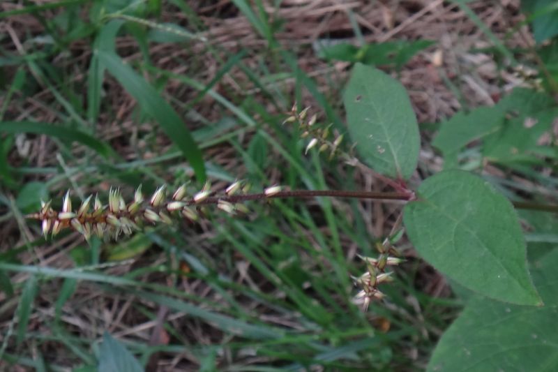 ヒカゲイノコズチ:日陰、葉が薄い、毛が少ない、花がまばら、葉先が徐々にとがる、小苞の間の白い付属体が大きい。