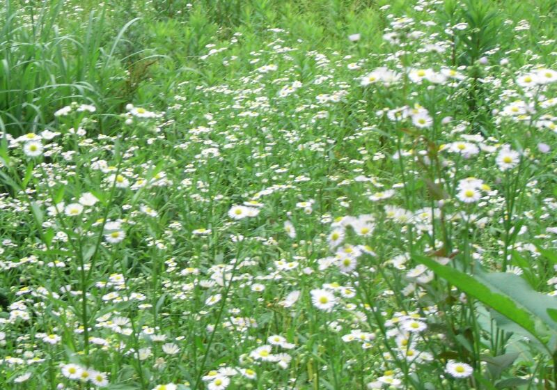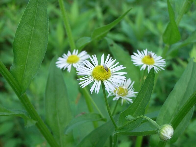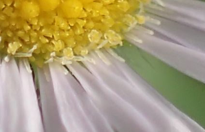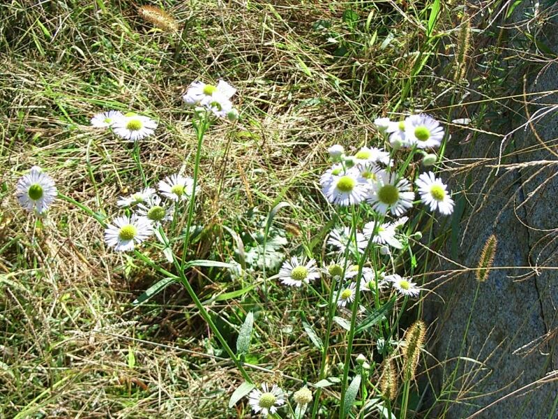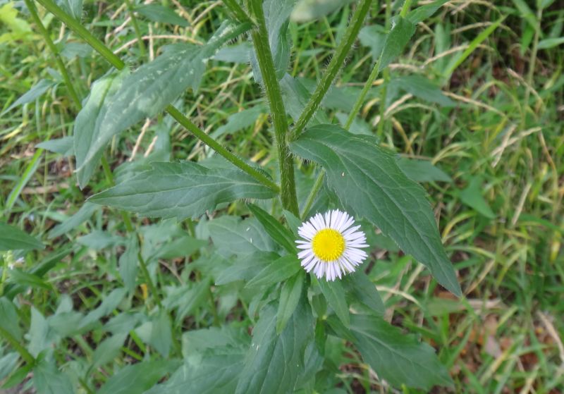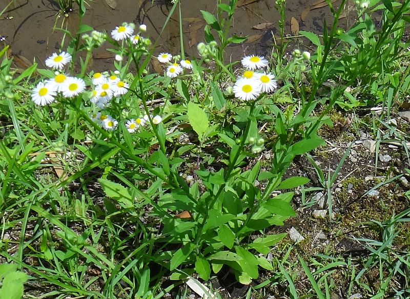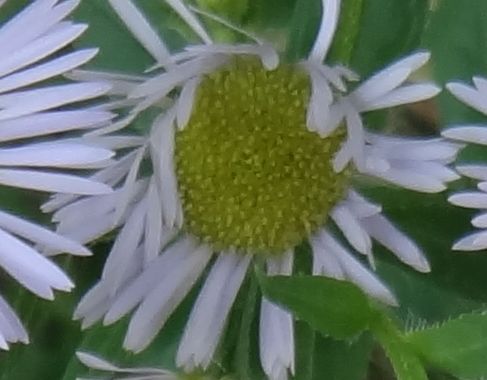 1つの頭花に100個ぐらいの舌状花がつくが、ハルジオンの場合より少ない。
