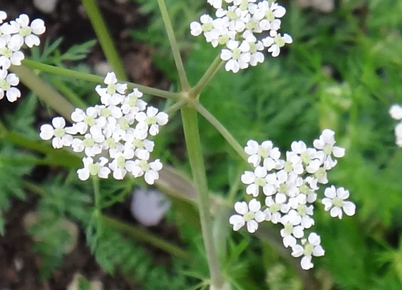 白い5弁花が複散形状に咲く。