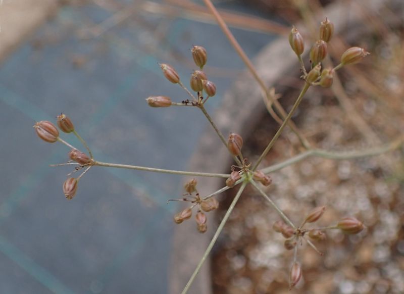 楕円形の乾果が複散形状につく。(2023/6/4)