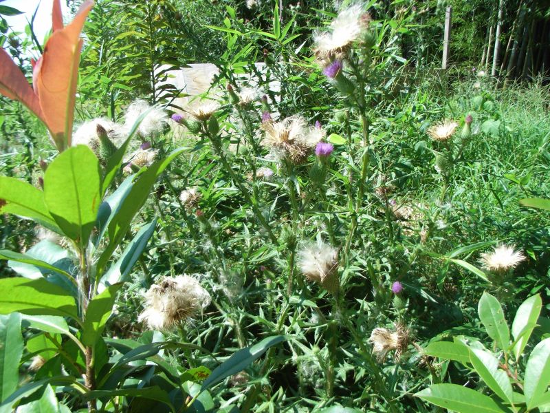 高く伸びる茎に葉のように薄い翼があり、翼に歯牙がある。