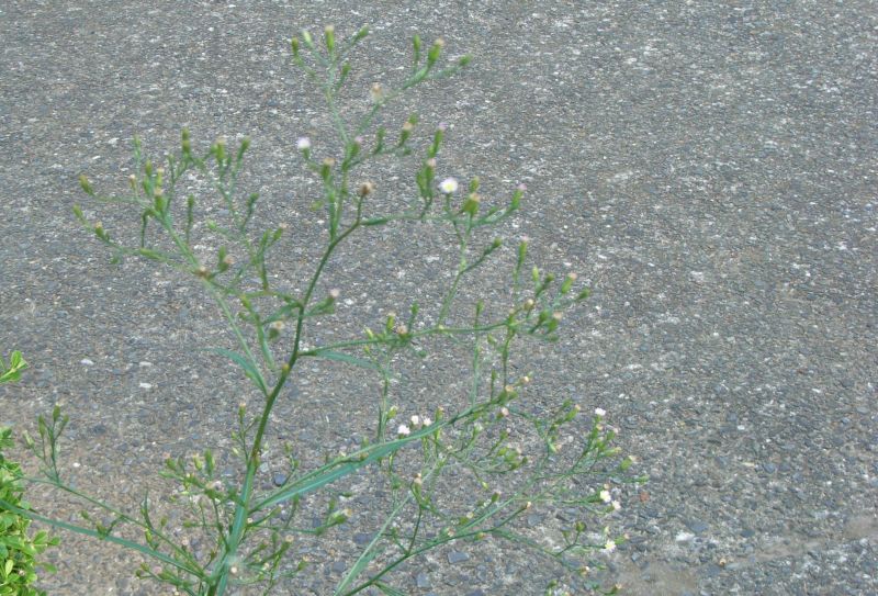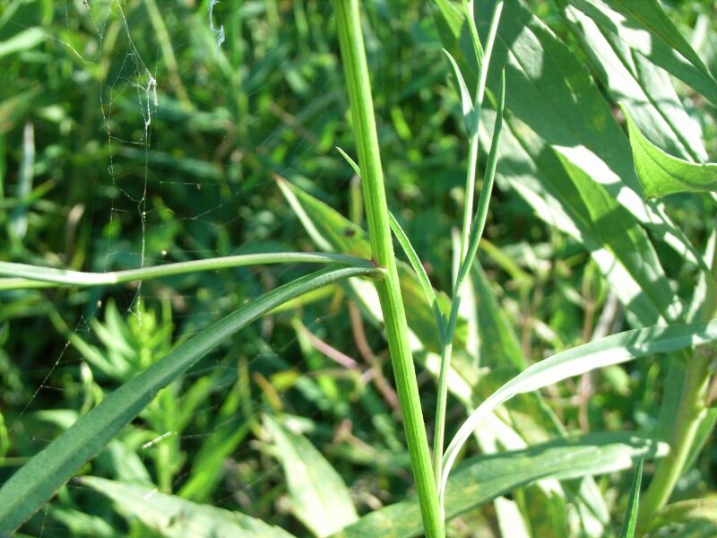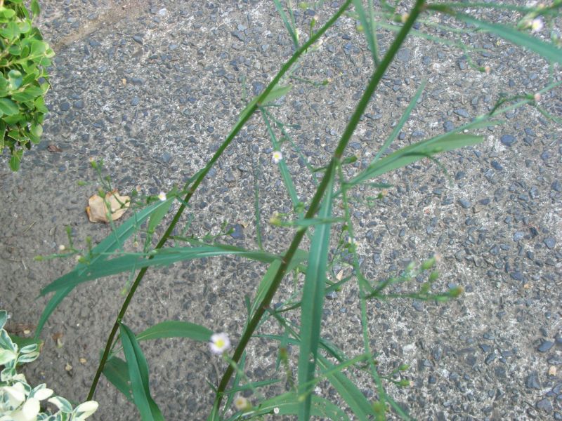 オオホウキギク :葉は先が次第に細くなる線形で、茎を抱く。上部の枝は上を向く。