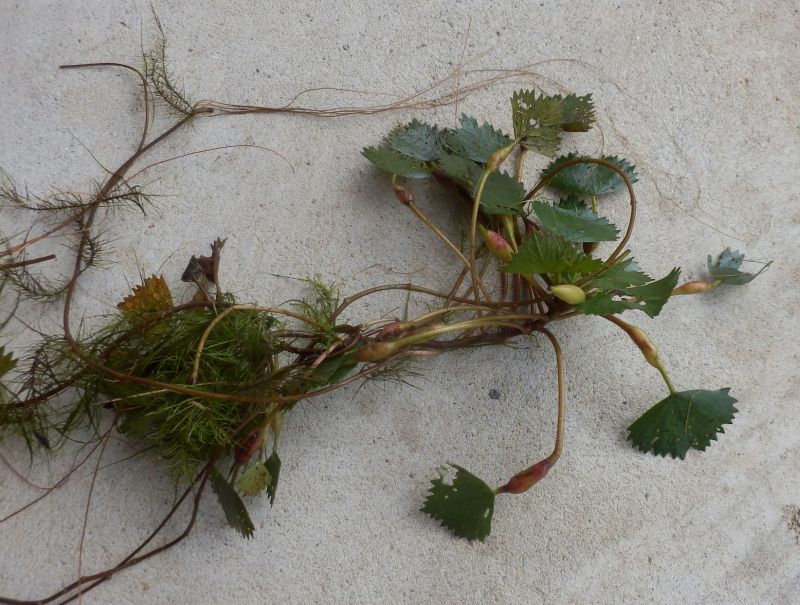 茎は枝分かれして節ごとに羽状の水中根を出してゆき、