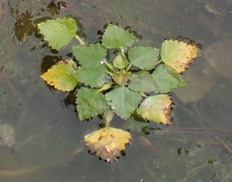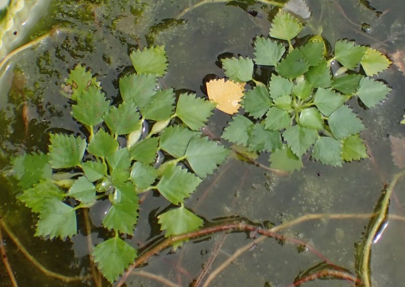 オニビシ。葉ではヒシとの区別はむずかしい。(2016/9/28)