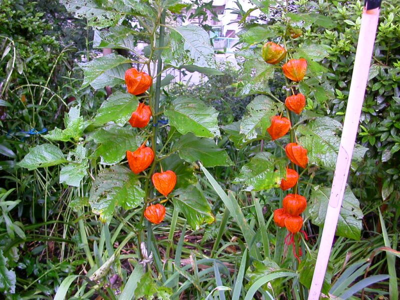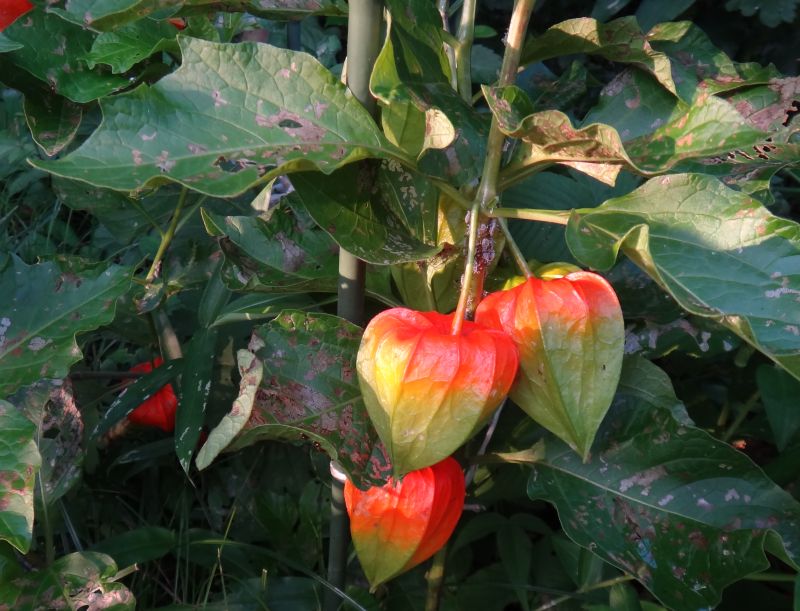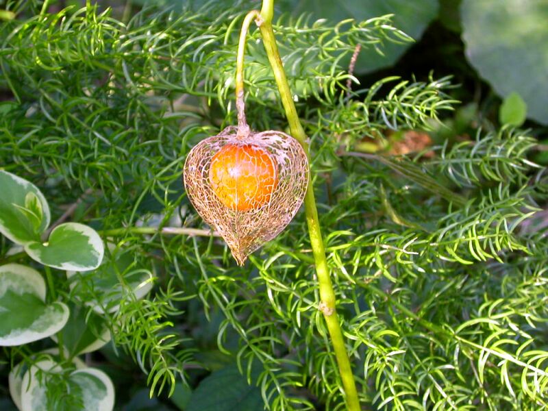 萼も橙色になるが、晩秋には網目状になって、中の液果が見える。