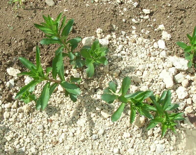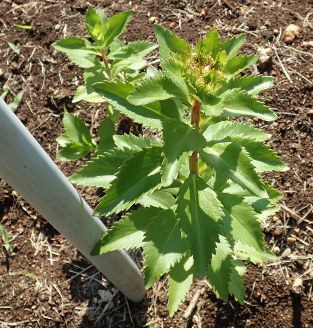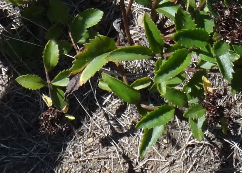 葉は披針形で、葉の上部だけでなく、縁全体に鋸歯がある。
